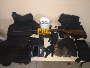 Blitz: Polícia Rodoviária Estadual apreende arma de fogo em São Gonçalo do Amarante A ação ocorreu durante blitz policial, onde após revista ao veículo suspeito foram encontrados uma Espingarda Cal. 36, além de coletes