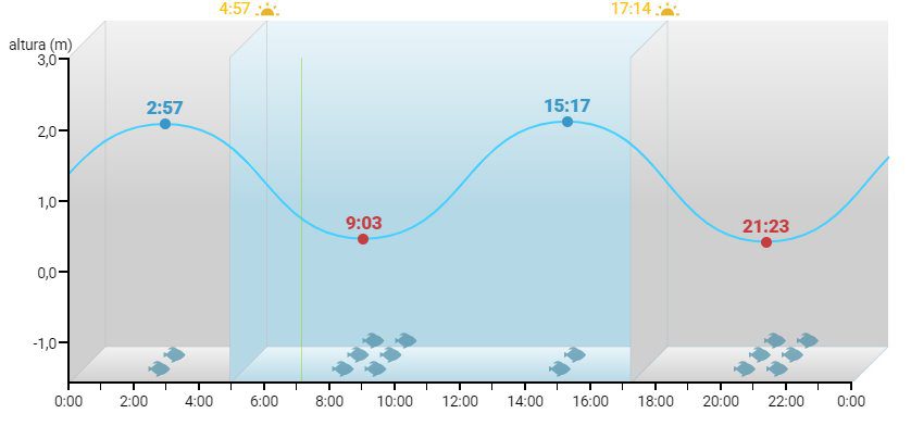 A primeira baixa-mar será às 9:03 e a seguinte baixa-mar às 21:23.