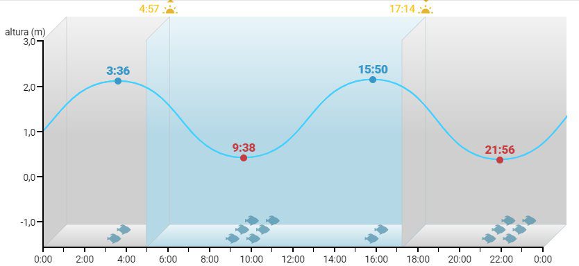 A primeira baixa-mar será às 9:38 e a seguinte baixa-mar às 21:56.
